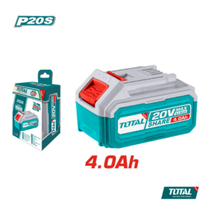 Total TFBLI20021 20V, 4.0Ah Lithium-Ion battery pack Product Specifications 20V lithium-ion battery pack (TFBLI20021) 4.0Ah capacity for longer runtime LED battery indicator for easy charge monitoring Compatible with all Total P20S 20V tools High performance, low self-discharge