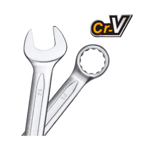 8-piece combination spanner set in various sizes. Sizes included: 6mm, 8mm, 10mm, 12mm, 14mm, 15mm, 17mm, 19mm. Each spanner is finely polished for precision and durability. Conveniently packed on a sturdy plastic hanger.