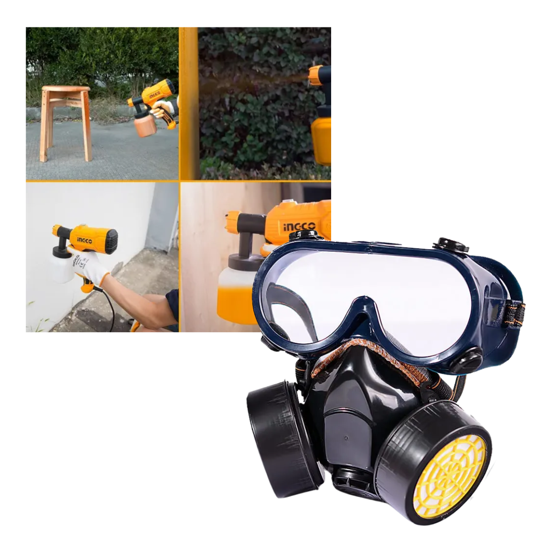 Electric Spray Gun 450W SPG3508 Ingco and Anti-Dust Chemical Dual Mask With Safety Glass