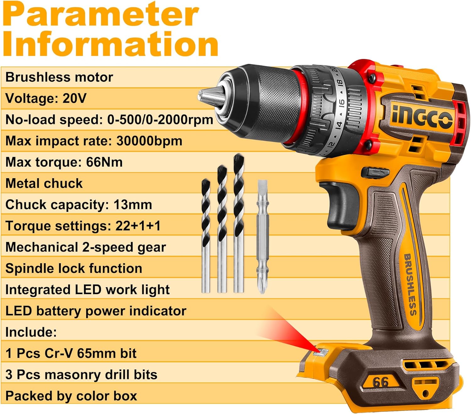 Ingco Cpmpact Brushless Cordless Impcat Drill 20V CIDLI206681