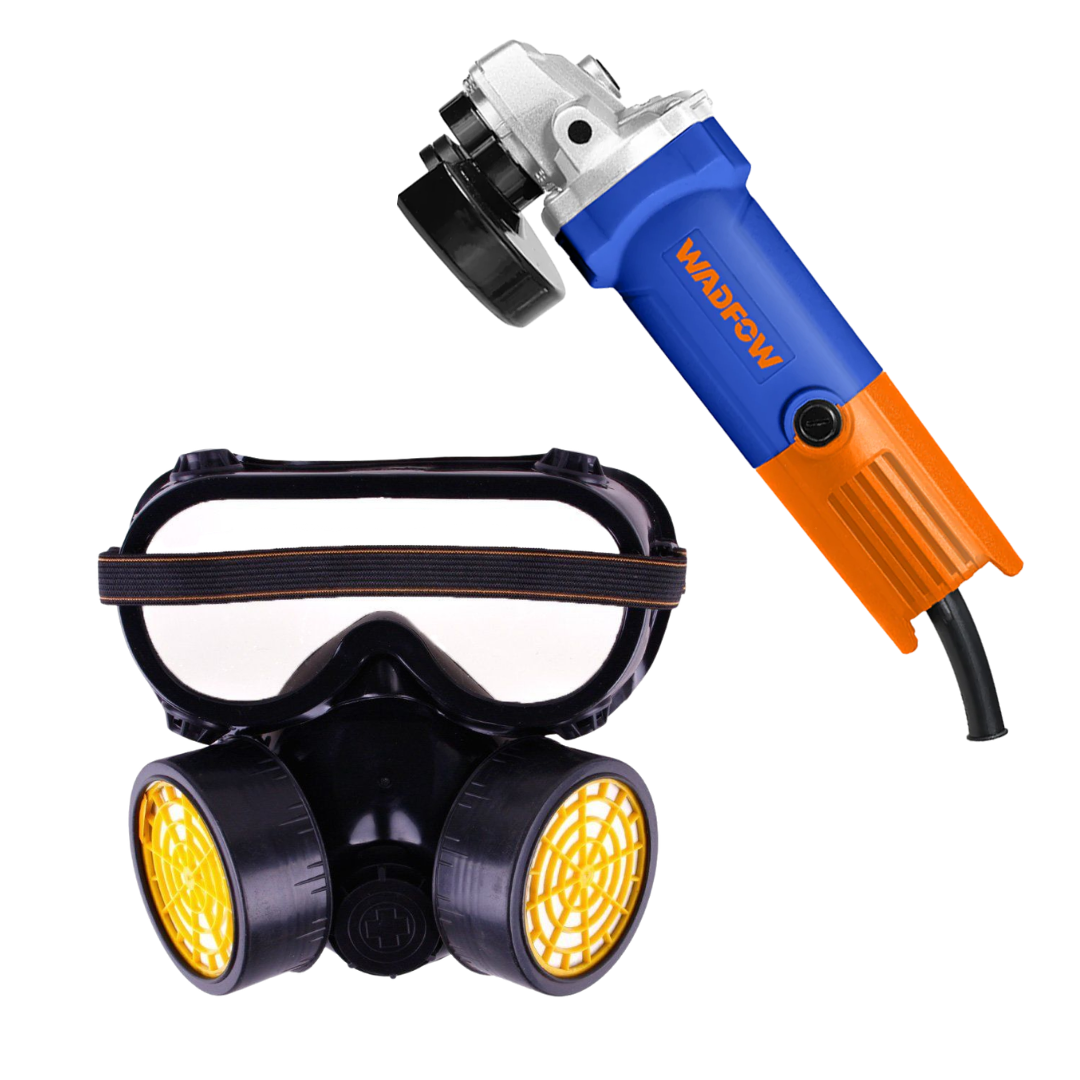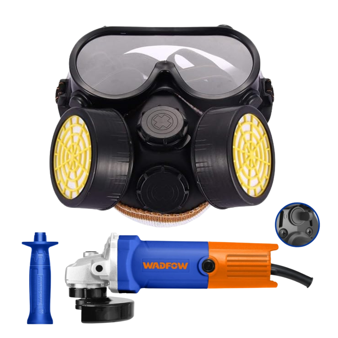 Wadfow Angle Grinder 100mm + Anti-Dust Chemical Dual Mask With Safety Glass