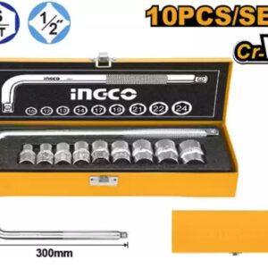 Hand tools Type : Wrenches Brand : Total 25Pcs 1/2″ Socket set Include: 1Pcs 1/2″Dr Ratchet wrench,45T 18Pcs 1/2″ Dr Socket:10-11-12-13-14-15-16-17-18-19-20-21-22-23-24-27-30-32mm 1Pcs 1/2″ Dr Universal Joint 2Pcs 1/2″ Dr Extension Bar:125mm & 250mm 2Pcs Spark Plug Socket:16mm & 21mm 1Pcs 1/2″ X 250mm Sliding T bar Material:CR-V(50BV30),heat treated Packed by BMC